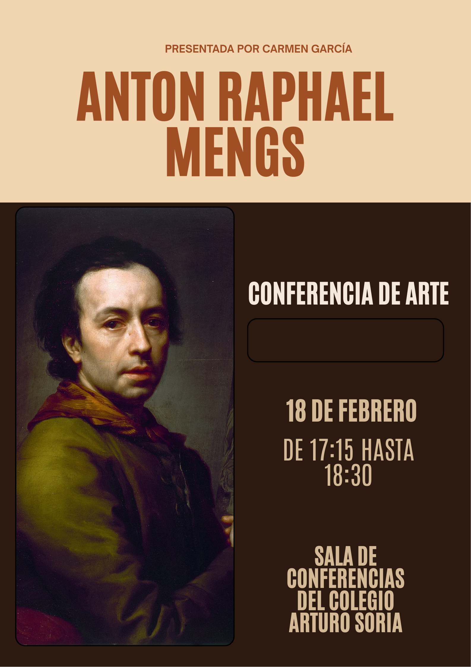 El próximo miércoles 18 de Febrero de 2026, a las 17:15h, contaremos con la presencia de Carmen García Iglesias. La ponente impartirá una conferencia sobre ANTON RAPHAEL MENGS : UN GIGANTE DEL SIGLO XVIII
