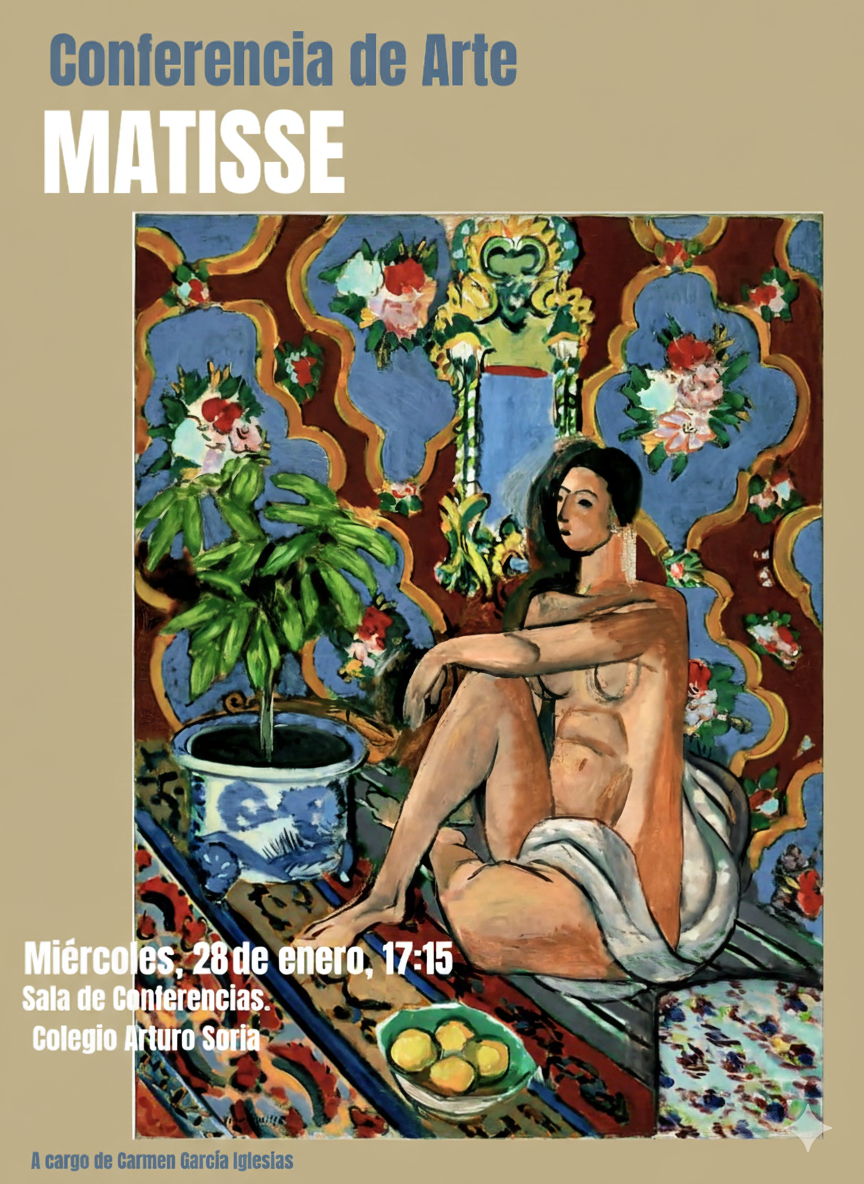 El próximo miércoles 28 de Enero de 2026, a las 17:15 h, contaremos con la presencia de Carmen García Iglesias. La ponente impartirá una conferencia sobre la exposición Chez Matisse: el legado de una nueva pintura, presentada en el CaixaForum del 29 octubre 2025 – 22 febrero 2026