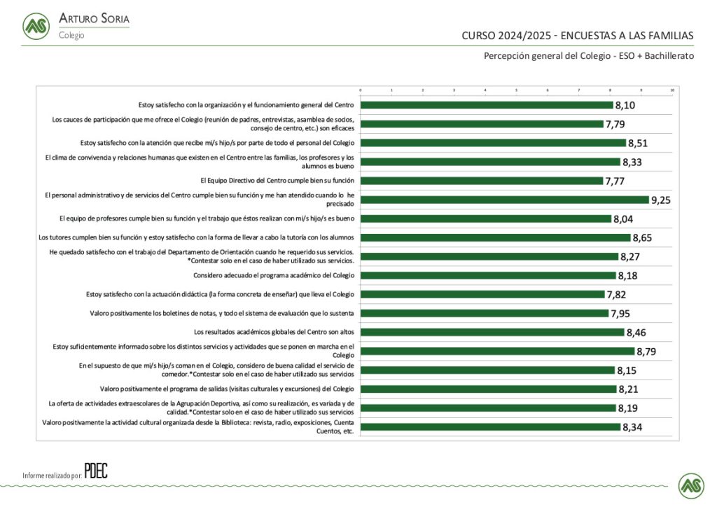 Encuesta de satisfacción a las familias curso 2024-25: Percepción general del colegio