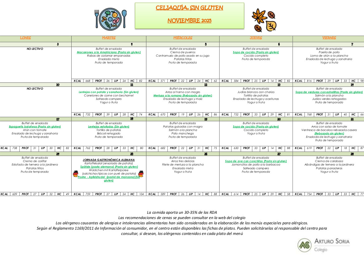 Los menús son revisados y calibrados por el Departamento de Nutrición de Sistemas Integrales de Calidad, S.L.U.