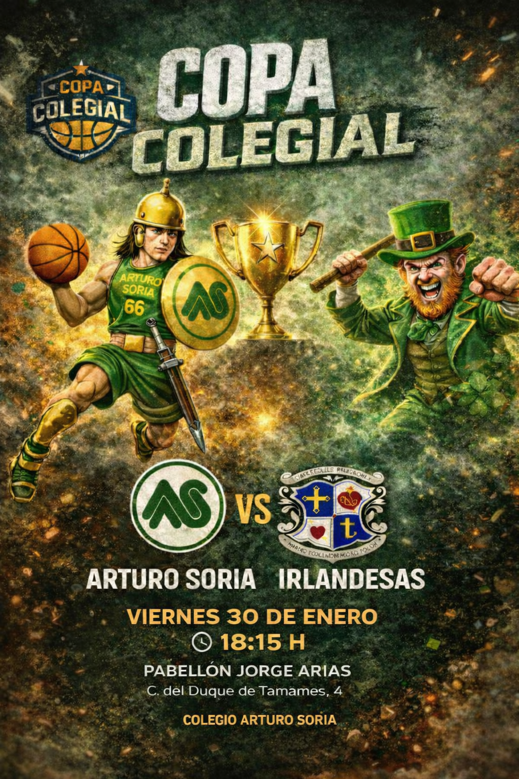 Recibiremos al equipo masculino del colegio Irlandesas. Tendrá lugar mañana viernes 30 de enero a las 18:15h en el pabellón del colegio. ¡Será un encuentro muy disputado e igualado!